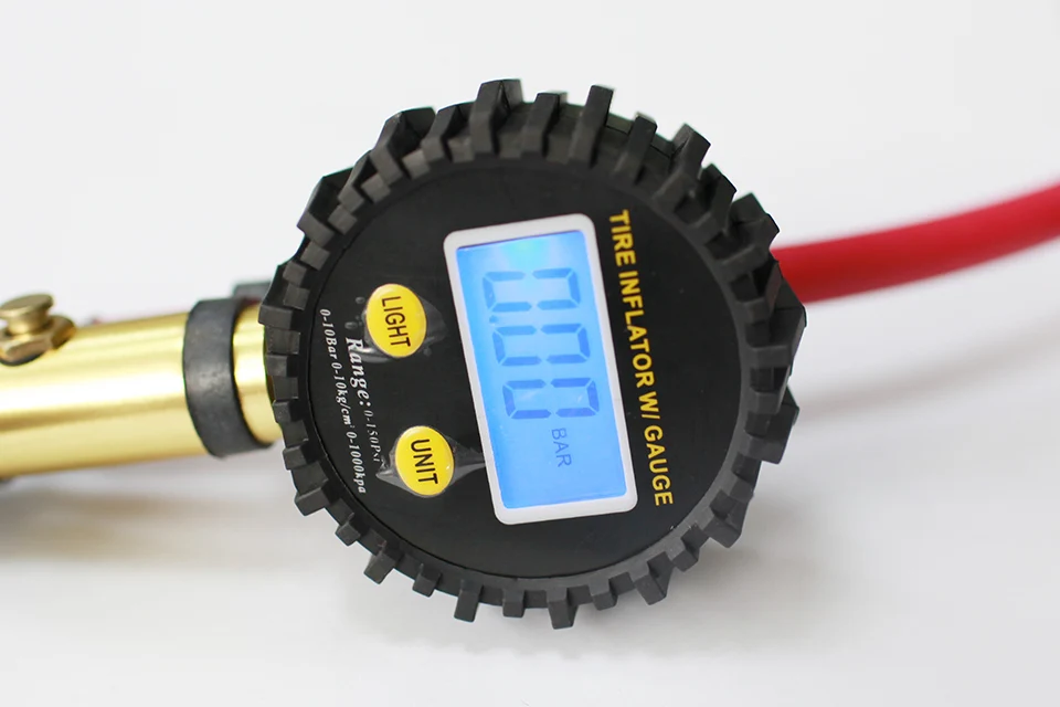 Digital Tire Inflating Gun Pressure Gauge 10-220 PSI Air Rubble Hose Long Rod