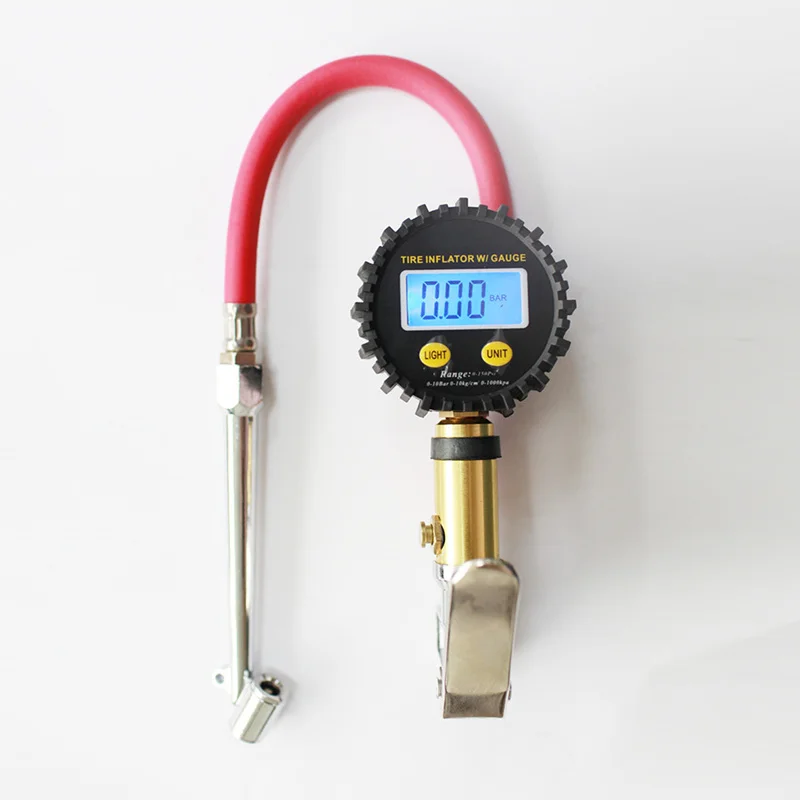 Digital Tire Inflating Gun Pressure Gauge 10-220 PSI Air Rubble Hose Long Rod LCD Screen Tire Repair Tools for Vehicle